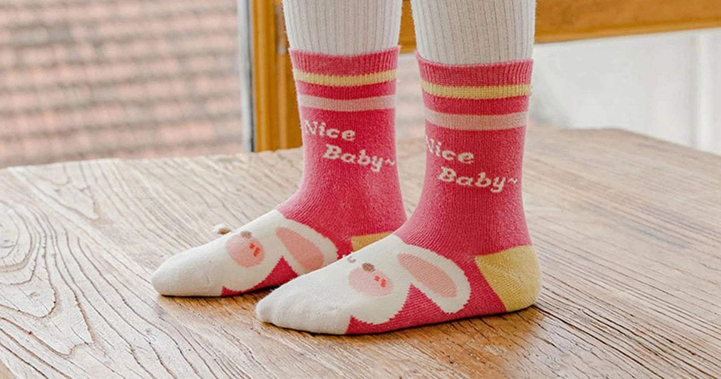 Cartoon Flowers Kids Non-slip Cotton Socks - Pack of 5