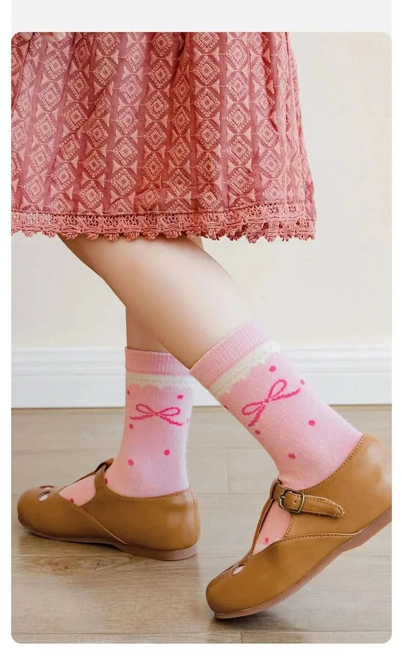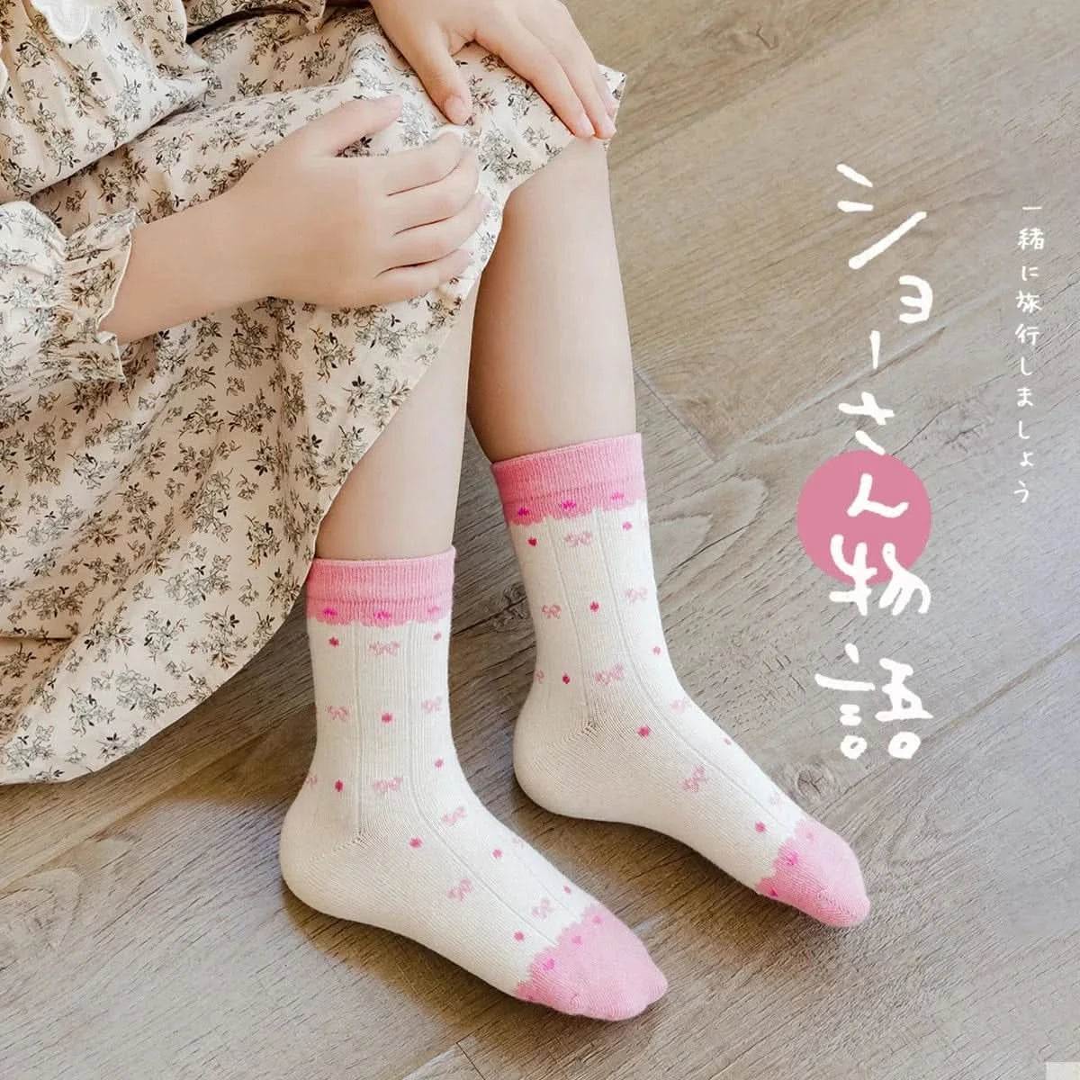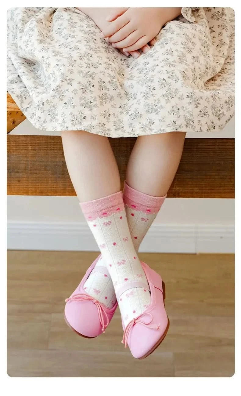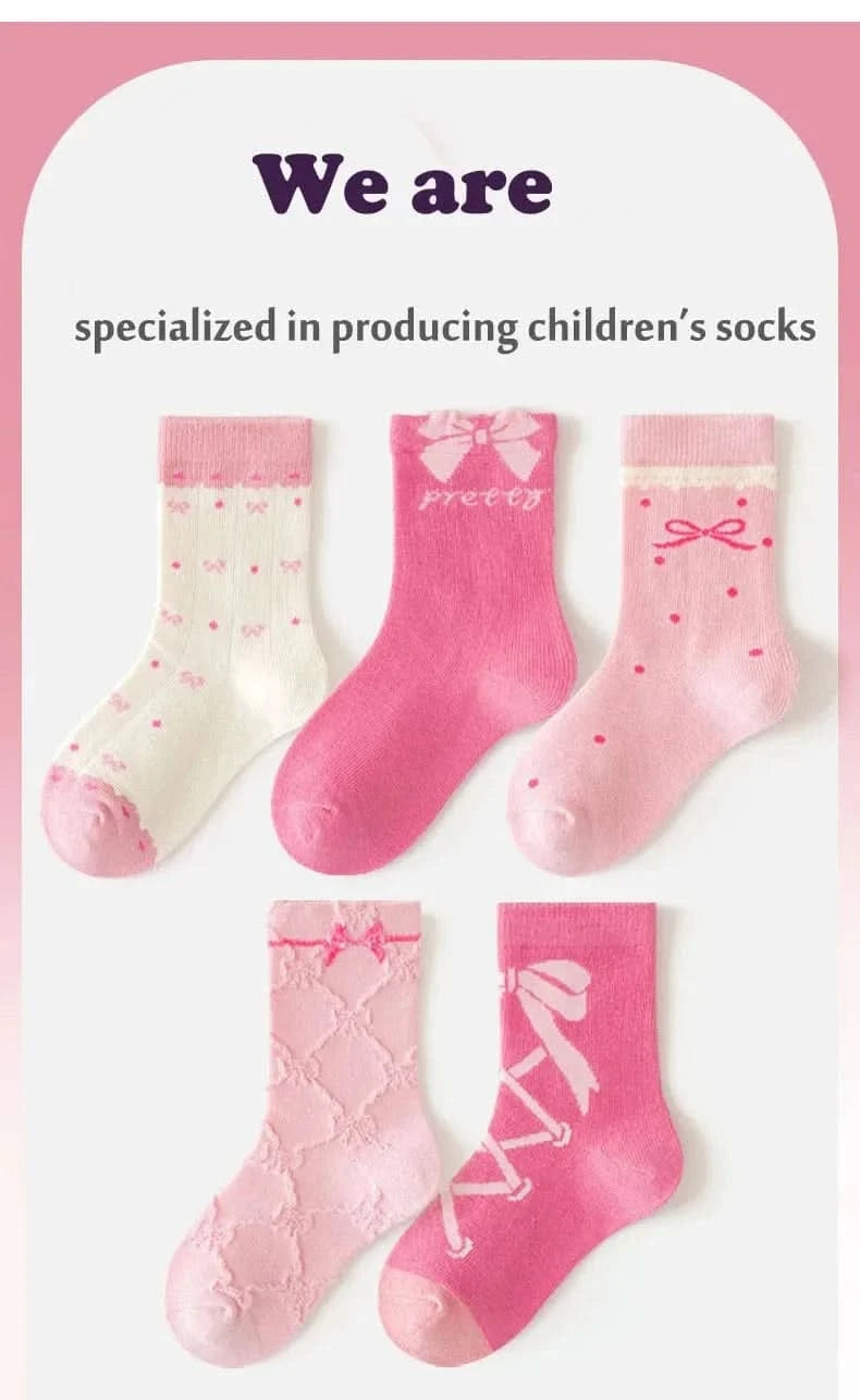 Sweet Rosy Bowknot Spring Girls Socks - 5 Pairs Kids Calf Cotton Children Socks