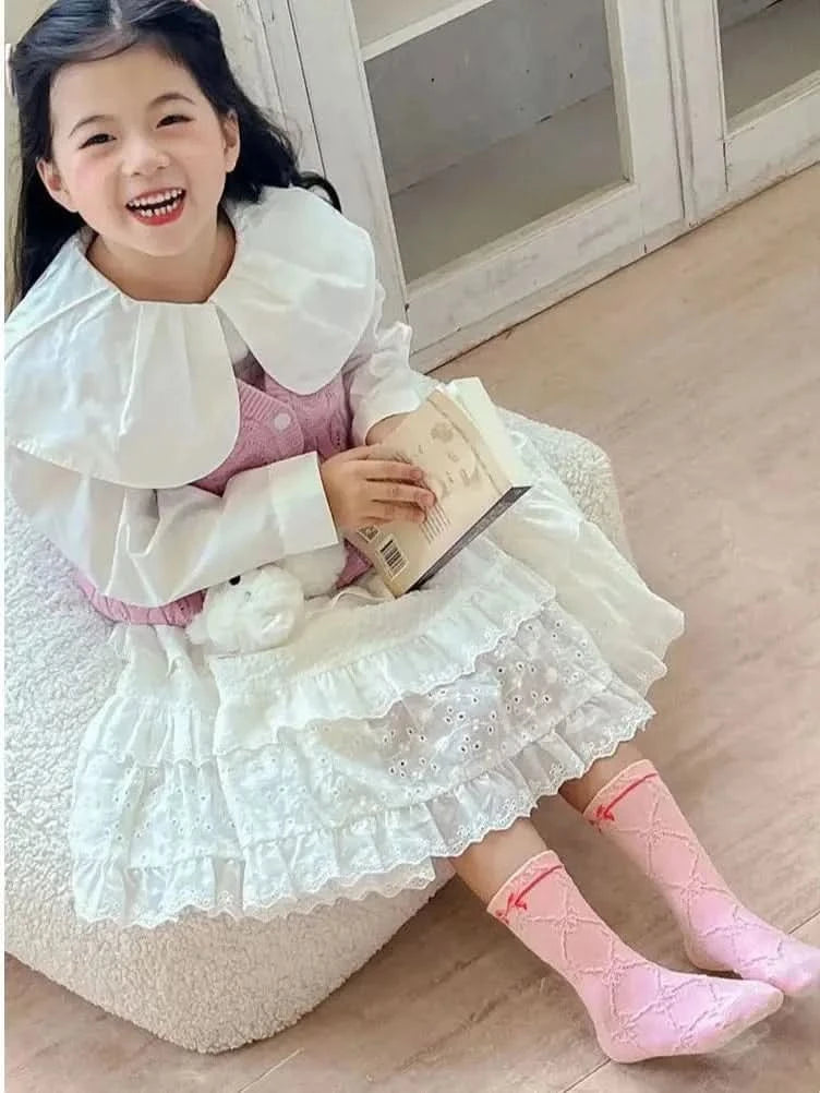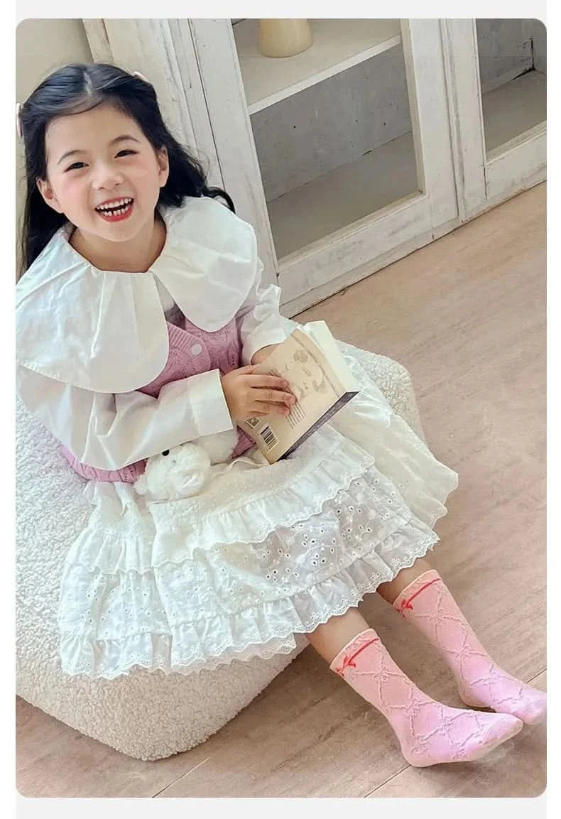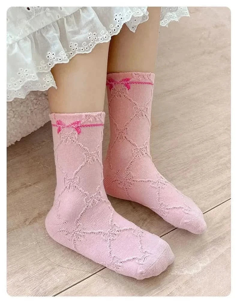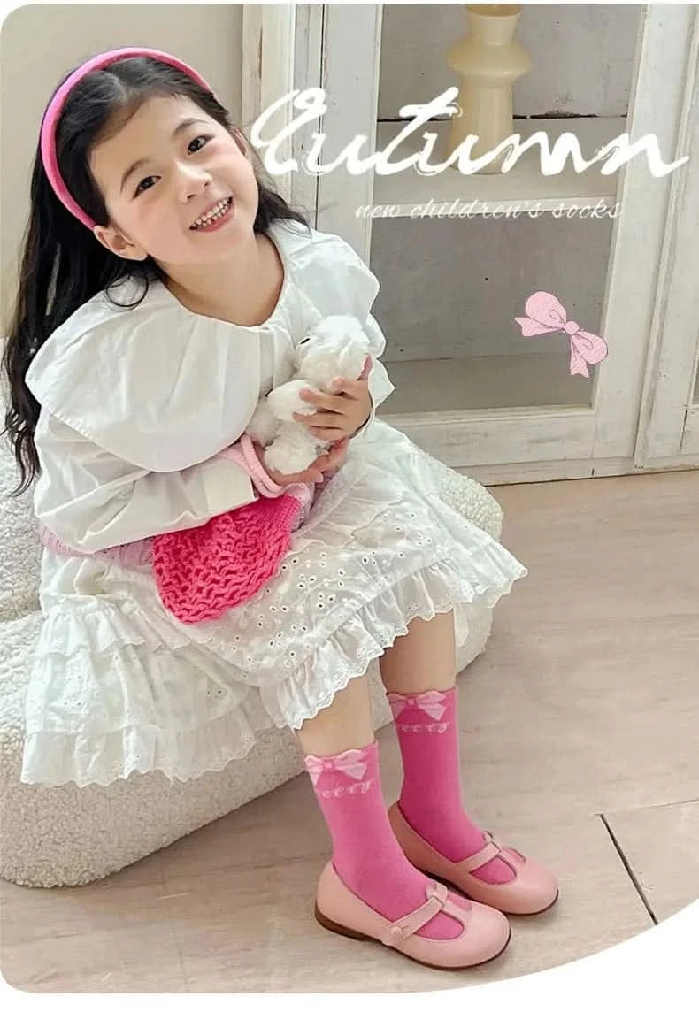Sweet Rosy Bowknot Spring Girls Socks - 5 Pairs Kids Calf Cotton Children Socks